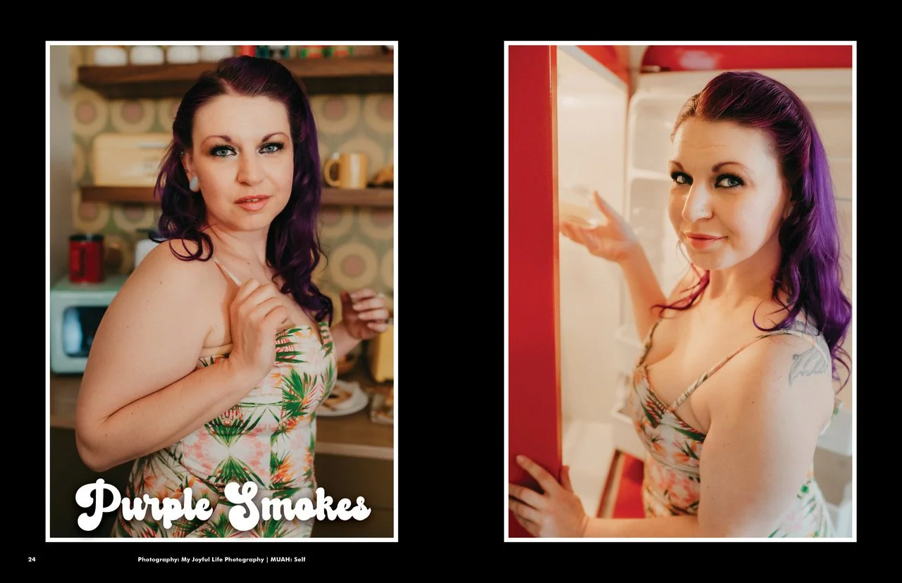 “Model, photographer, content creator, performer, costume coordinator, and media director. My work has appeared in Rocket Magazine, Jelly Baby Magazine, BabeWatch Magazine, Sultry Models Magazine, RetroLovely Magazine, and more. Born and raised in Southern California, I love the outdoors and spending time with family and friends.”